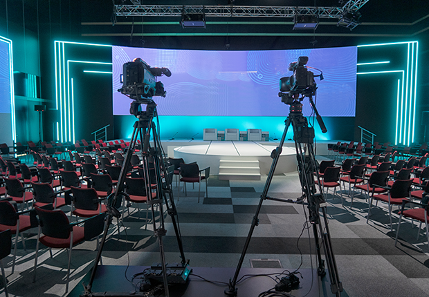 Des gradins virtuels modélisés accueillent des milliers d’avatars simultanément lors de sessions plénières diffusées en très haute définition.